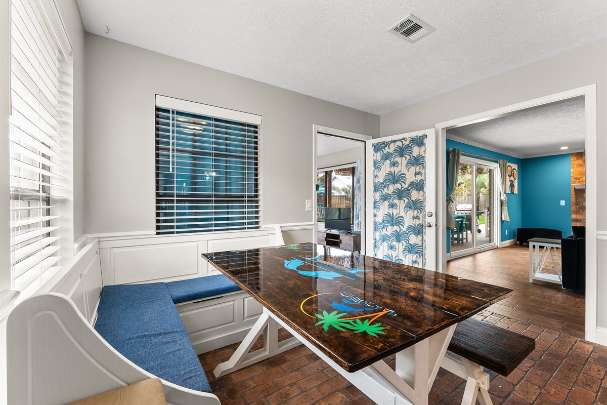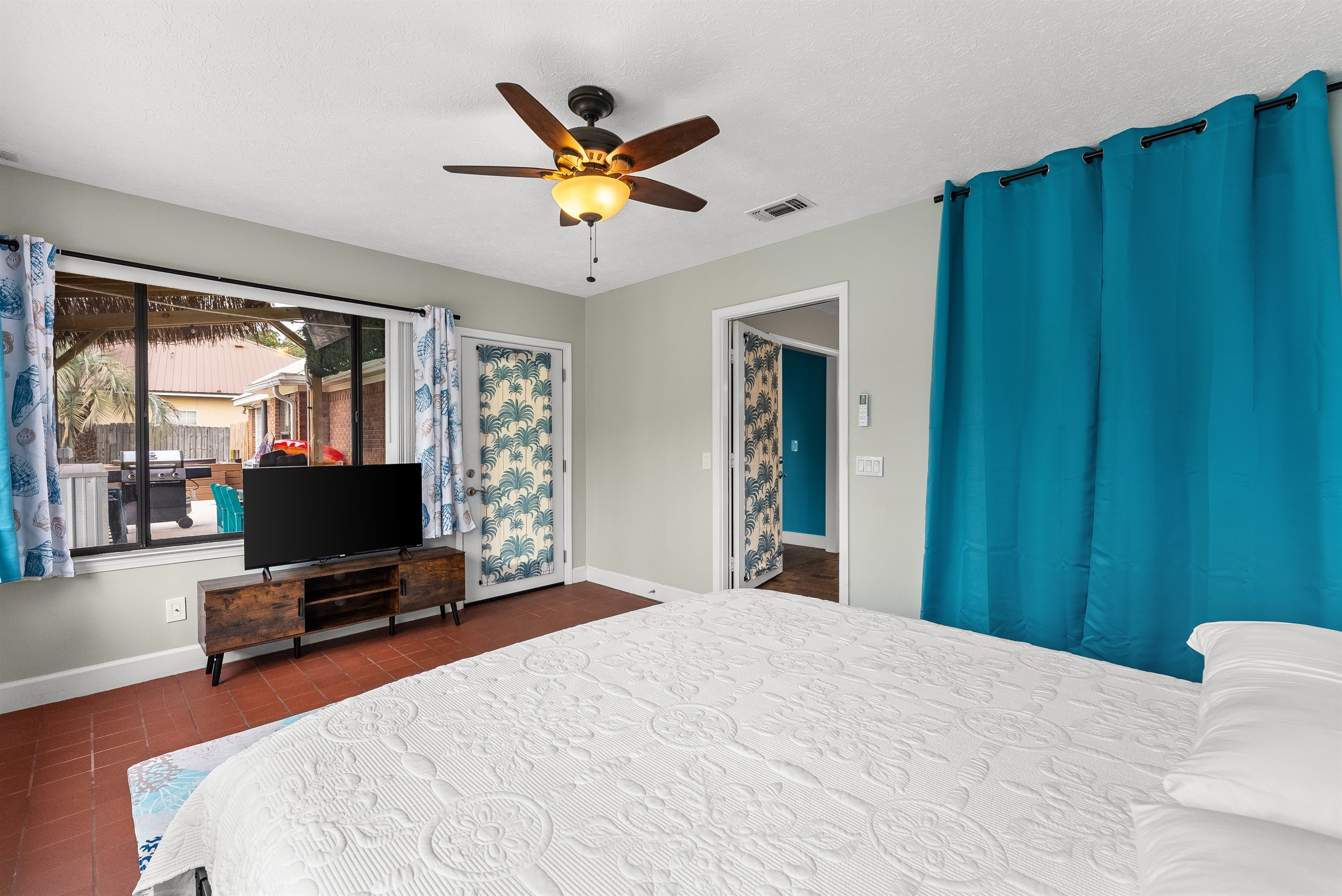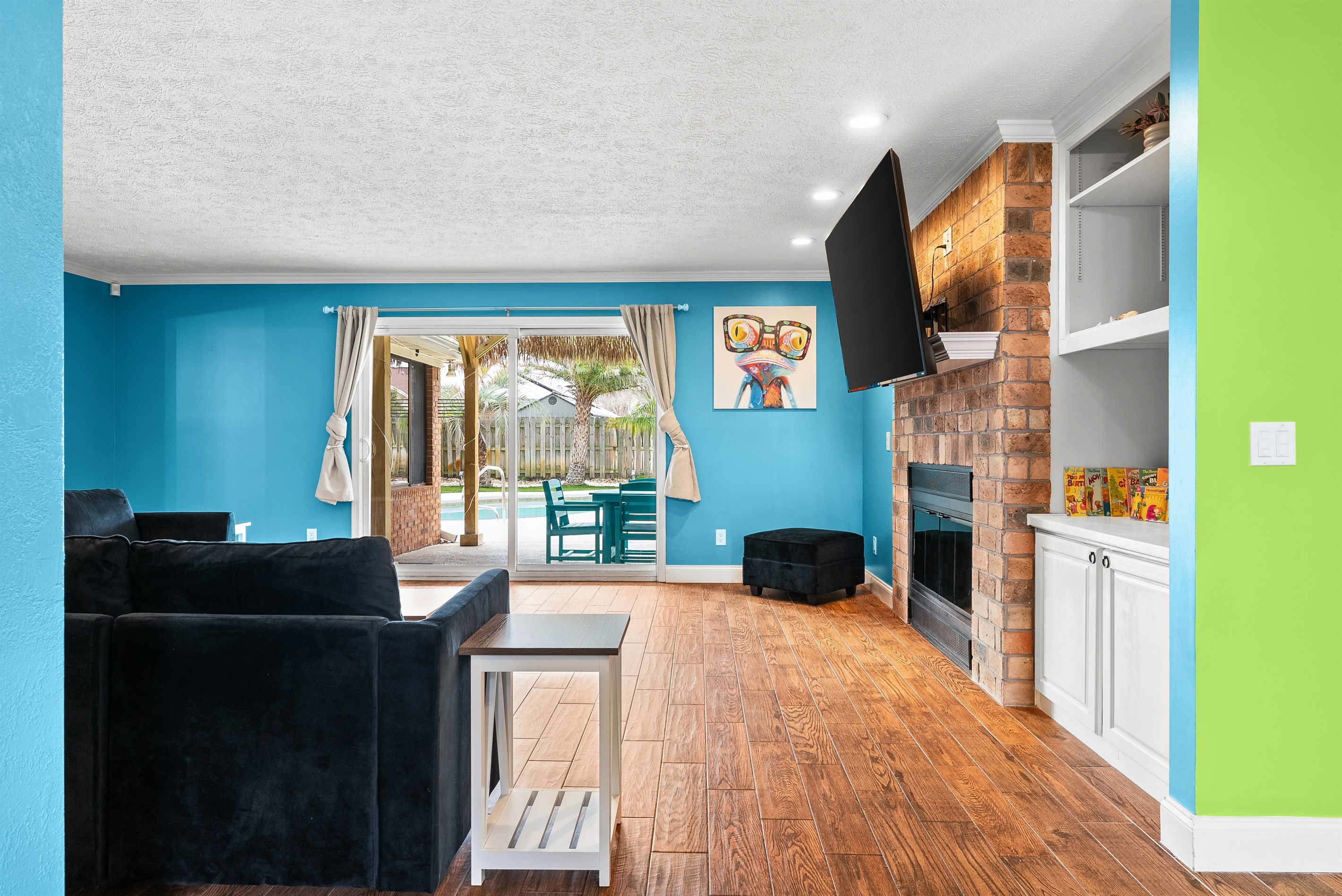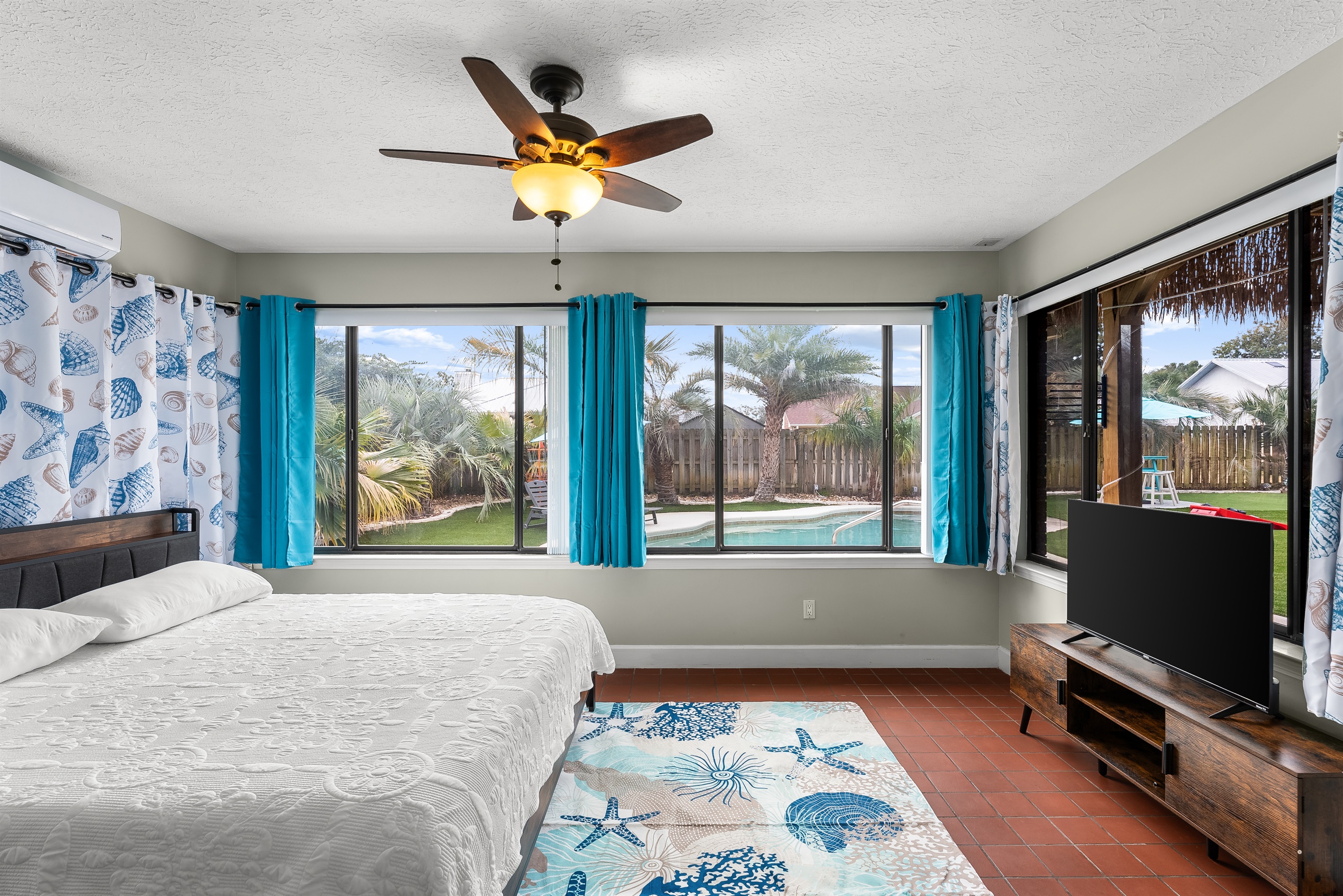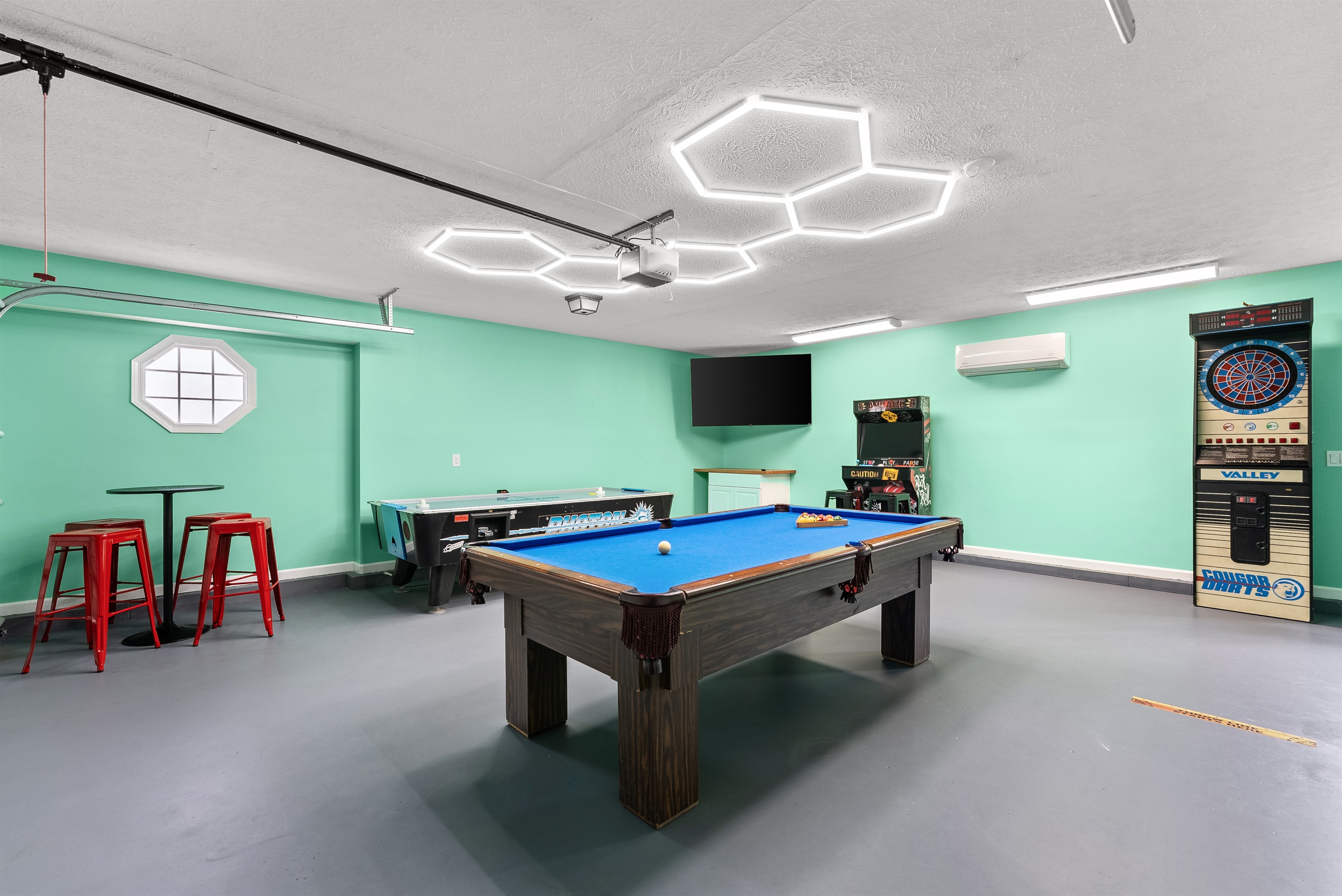 5 Bedrooms • 2 Bathrooms 2 Baths • Sleeps 1-14High Tide offers an unmatched Caribbean experience that is only 5 minutes from the beach. The backyard has a unique 3-course mini golf, disc golf, ping pong, corn hole, shaded seating area, grill with tiki bar and a large dining table to enjoy your meals poolside. It doesn't get much better than that! Looking to just relax and soak up the sun? No problem! The heated salt water pool is a great place to float around in or lounge on the sunny deck. When the sun goes down the fun doesn't end, you can enjoy a nice soak in the 4 person hot tub or listen to the sounds of nature while sitting at the tiki bar with a 70" T.V We are located so close to the beach with that Caribbean feel right in the backyard. Next head inside to an unmatched game room that consists of an air hockey table, pool table, darts, TV, pub tables and an arcade machine with 20,000+ games! There's fun for everyone!
