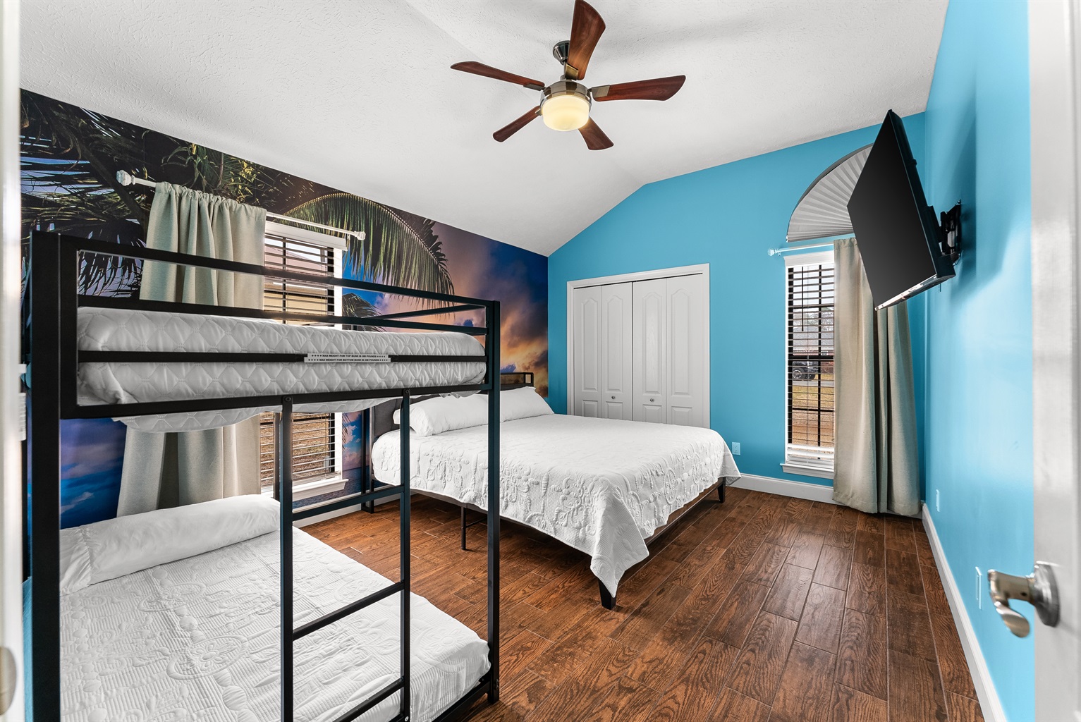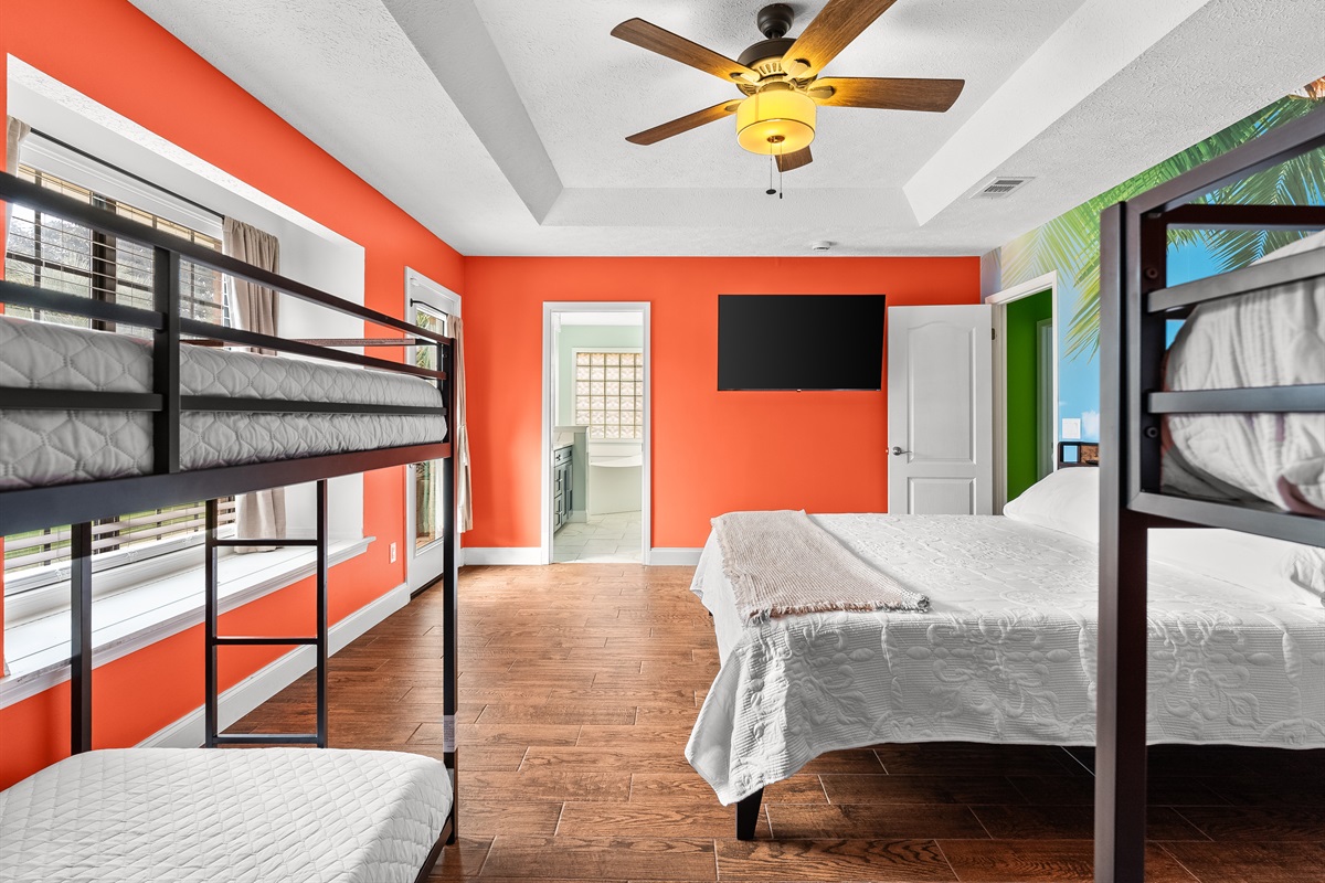 We have room for many families or friend groups to all be together. All bedrooms have luxury king size mattresses and some also have twin bunk beds as well. From the outdoor games, water activities, tiki hut, indoor game room, there is something for everyone to enjoy and have an amazing vacation!
