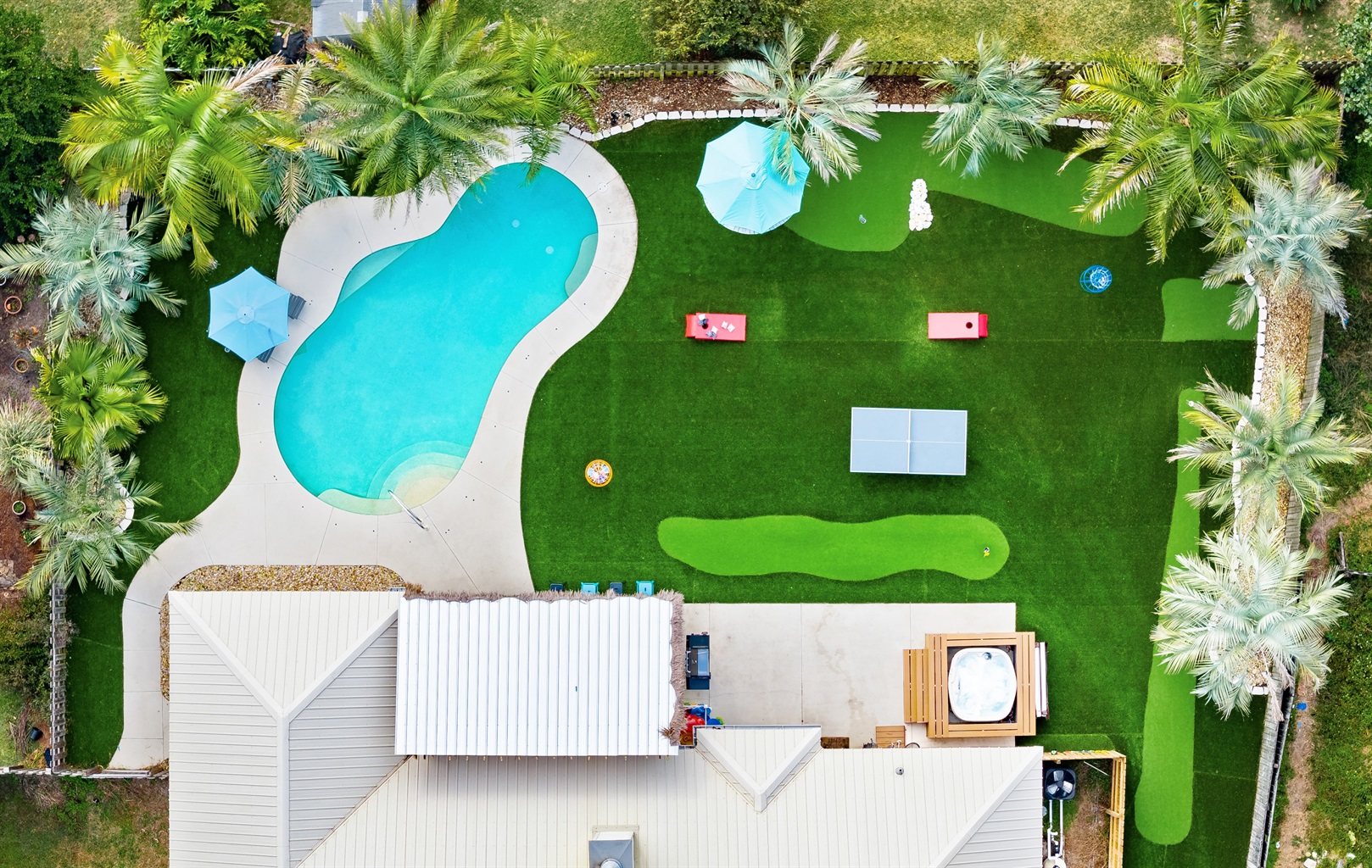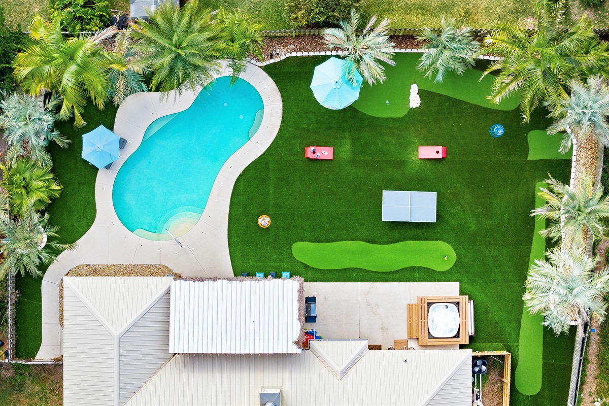 High Tide brings together an amazing experience for friends and family. All the trees in the backyard are beautiful. From time to time mother nature moves those trees around and as a result leaves tend to fall on the turf and in the pool. Our lawn/pool maintenance crew will remove them off a few times a month, however they might not show during your stay. We have provided a leaf blower, located in the laundry room, and a pool net that you are free to use to clear off the backyard and the pool.